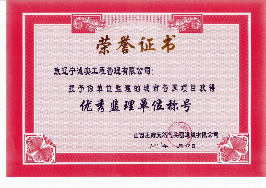 2017年山西壓縮天然氣集團優(yōu)秀監(jiān)理單位